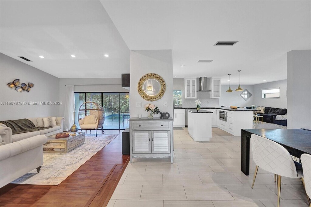 Beautiful 4 bed/3 bath Guard Gated POOL home in coveted Highland Lakes area of Miami. Great entertaining space with 2502 sf, updated kitchen, open concept to den with great views of backyard and pool. Spacious bedrooms, outdoor playground, covered patio with dining area, large pool with child safety fence, backyard grassy area, cabana bath, and BBQ. Plenty of closet space throughout. Separate laundry room with front loading Washer/Dryer. 4th bdrm ideal for work-from-home office. Circular driveway on corner lot at start of cul-de-sac fits many cars. Close to Florida beaches, I-95, famous Aventura Mall, restaurants, houses of worship, Brightline train and great schools! Central A/C & Heating, Alarm System and Storm Shutters.