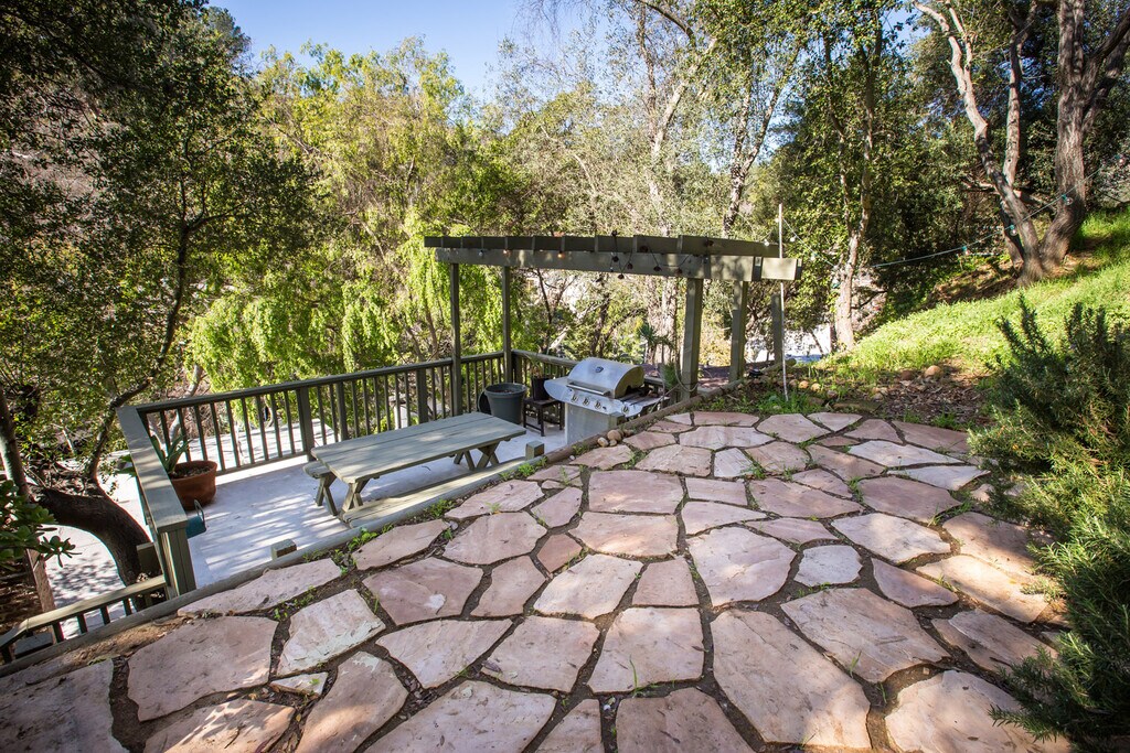 PRIVATE BEL AIR OASIS -- HIKING TRAIL, DECKS & MOUNTAIN VIEWS! Absolutely charming home in a peaceful, retreat-like setting surrounded by trees, greenery, and stunning views. Excellent location just minutes from Beverly Hills, Century City, UCLA, and a short drive to the Valley. It has everything you need, including a kitchen with granite countertops, microwave, stove, refrigerator and dishwasher. Although a studio, it has a private sleeping area, a walk-in closet, and a cozy wood-burning fireplace. It also has a washer/dryer, and built-in wine cooler. The outdoor space is truly special -- a peaceful oasis of trees and greenery with over 18,000 square feet to enjoy with decks, a gazebo and private hiking trail. The Glen Centre with its upscale restaurants, boutiques and markets is right up the street. Walking distance to the beautiful Stone Canyon Reservoir with more hiking trails and stunning views. Ideal for someone who loves nature and indoor outdoor living, yet wants to be close to everything and have modern conveniences. This is the main level of a duplex, set off the street for privacy, offering a rare opportunity to live in one of Los Angeles' most exclusive neighborhoods at an accessible price. Private, serene, and truly unique!