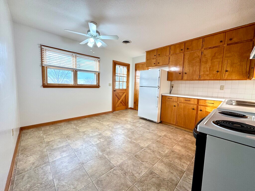 This spacious 2-bedroom, 1-bathroom apartment offers a perfect blend of comfort and convenience. Located on the second floor of a well-maintained building, it features two large bedrooms, a generous living room perfect for relaxing or entertaining, and an eat-in kitchen with ample space for dining. You'll also enjoy a deep one-car garage stall, offering additional storage and protection for your vehicle. A back deck just off the kitchen provides a perfect spot to enjoy the outdoors and take in the neighborhood. With two separate entrances, this apartment offers easy access and flexibility. The building is also equipped with affordable coin-operated laundry. Situated right next to the Oelwein High School, this apartment is ideal for those looking for easy access to local amenities. Don't miss the opportunity to make this charming apartment your new home! Renter pays for electric and water. No smoking. No pets. Trash covered by owners