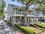 Tucked beneath a canopy of sweeping live oaks, this beautifully updated home is ideally located in the heart of Riverland Terrace—just moments from downtown Charleston and steps from the award-winning Charleston Municipal Golf Course. This home places you steps from beloved restaurants, shops, parks, and the iconic Terrace Theater. A blooming English garden entrance and classic double-stacked porches welcome you home, inviting slow mornings, quiet afternoons, and breezy evenings spent outdoors. Inside, hardwood floors run throughout, grounding the airy interiors in warmth and character. The kitchen shines with stainless steel appliances, stunning quarzite countertops, and a freshly updated subway tile backsplash blending beauty and function for effortless entertaining and everyday living. Upstairs features three sunlit bedrooms. The spacious primary suite is a true retreat, featuring soaring vaulted ceilings and serene views of the golf course—perfect for waking up with the sunrise and winding down with golden hour light. Out back, you’ll find your own private oasis: a sparkling pool, surrounded by lush greenery and complete with a luxurious outdoor shower. A pass-through bar from the kitchen adds a touch of effortless hospitality, perfect for poolside cocktails or laid-back lunches with friends. And the charm doesn’t stop there—tucked discreetly at the back of the property is a beautifully renovated Accessory Dwelling Unit (ADU), currently operating as an income-generating STR. It offers two additional bedrooms, a modern kitchen, and stylish finishes. Whether it’s for guests, family, or a rental opportunity, this space is as versatile as it is beautiful. A private gate leads to a spacious two-car garage, rounding out the home’s generous layout. Life in Riverland Terrace is a step back in time in the very best way. With no HOA, you can park your boat right at home and take full advantage of the public boat landing just steps away. Picture evenings at the Terrace Theater, dining at Kwei Fei, live music at The Pour House, or pizza with neighbors at Crust. It’s a community that hums with personality and heart. This is more than a house. It’s a lifestyle—wrapped in history, graced by nature, and designed for connection. Southern living at its most refined and relaxed. Welcome home.