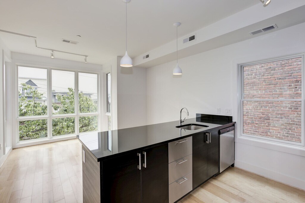 Two-bedroom + Den. Private Roof Deck. Washer/Dryer in unit. Close to Downtown and the shops, galleries and restaurants of Upshur Street and Georgia Ave. Hardwood floors, stainless steel appliances, quartz counters, custom kitchen & tiled baths.