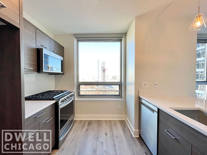 ** BUILDING AMENITIES ** - Garage parking available - Direct River Walk access - Private on-site dog run - 24-hour cardio and weight studios - Spacious, landscaped sky terrace with fire pit and fountain - Outdoor kitchen and grills - Professional conference room and business center - Entertainment Suite with billiards, shuffleboard table & flat screen TVs - Complimentary WiFi in amenity spaces - Complimentary bike storage - Package receiving services - 24-hour concierge - On-site management - LEED Silver® level of sustainability and design - Smoke free ** APARTMENT AMENITIES ** - Gas ranges - Floor-to-ceiling windows - Expansive walk-in closets - In-home laundry with full-size washers & dryers - Breathtaking views of historical downtown Chicago and The Chicago River - Central heating and air conditioning