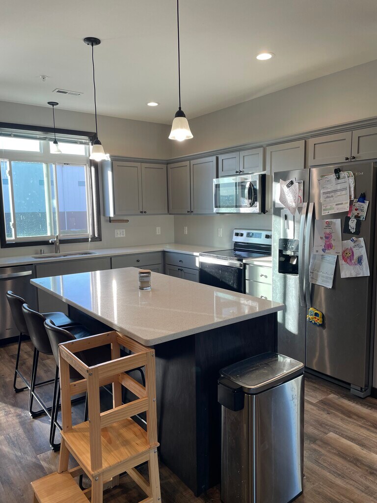 End Unit townhome with balcony and garage. Enter this modern townhouse through the tandem two stall garage or through the front door. Second floor consists of open concept kitchen and living room. Huge walk in pantry, island, fire place, balcony, and powder room. Upon going to the third floor you have primary bedroom with private bathroom and LARGE walk in closet. Laundry on 3rd floor as well as another full bathroom and additional two rooms. Pets allowed $50 a month pet rent Max 2 pets No smoking