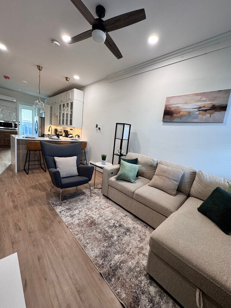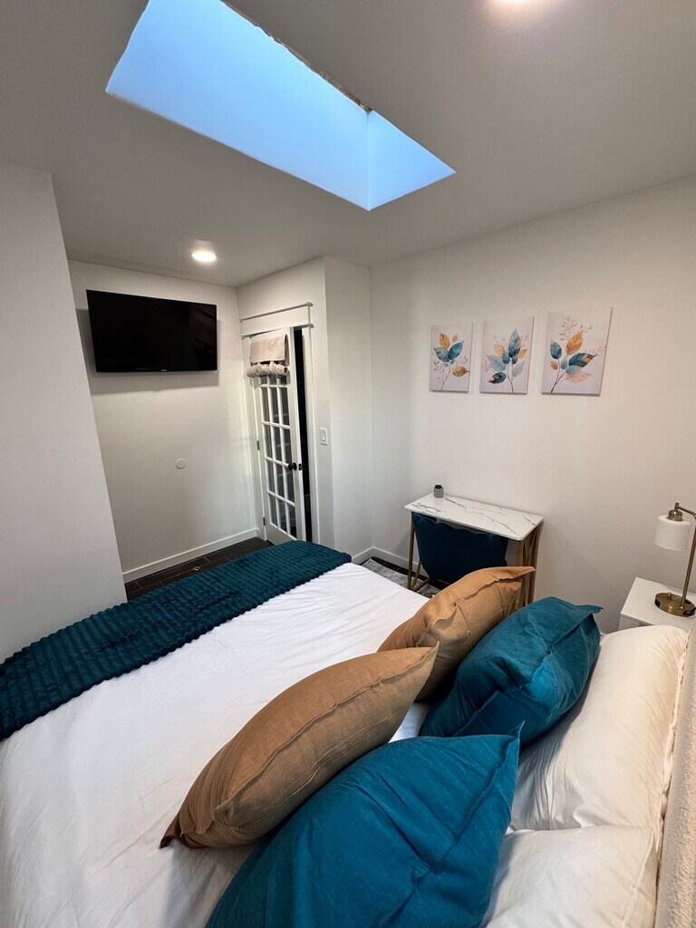 Modern Furnished 2BR • Two-Story Apartment • 1–6 Month Stays Experience comfortable, modern living in this fully furnished two-story 2-bedroom apartment located in Jersey City’s West Side. This updated home is ideal for relocation clients, travel professionals, contract workers, and those needing 1–6 months of housing. Just a 7-minute walk to the West Side Ave Light Rail, the apartment offers an easy 28–35 minute commute to Manhattan, quick access to Downtown Jersey City, and a 15-minute drive to Newark Airport. Inside, enjoy a spacious layout with a fully equipped kitchen, fast Wi-Fi, smart TVs, an in-unit washer/dryer, and dedicated workspaces in both bedrooms. The primary suite includes a king bed, lounge sofa, and walk-in closet. The second bedroom features a skylight, desk, and queen bed. Relax outdoors on your private patio with grill, or unwind in the shared backyard with fire pit. Driveway parking and EV charging are available upon request. Perfect for individuals seeking a clean, quiet, turnkey home in a convenient location.
