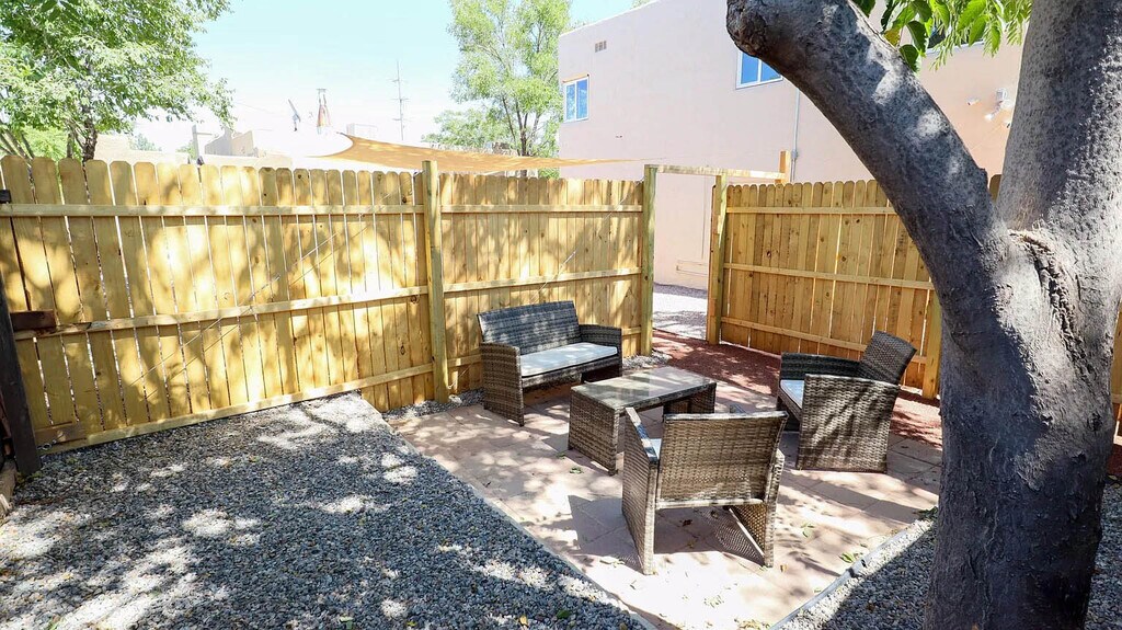 Newly Remolded House with Private Yard Fully Furnished Located near UNM, UNMH, and Presbyterian Hospital Walking distance from the best Breweries and Restaurants in Albuquerque Smart TV, Disney+, HULU, NETFLIX, HBO, Prime Common yard w/ fire pit and grills FAST Wifi Master bedroom with ensuite bathroom Tempur-Pedic bed Fully equipped kitchen w/ granite countertops Extremely safe neighborhood FREE Onsite secured parking Washer + dryer in unit