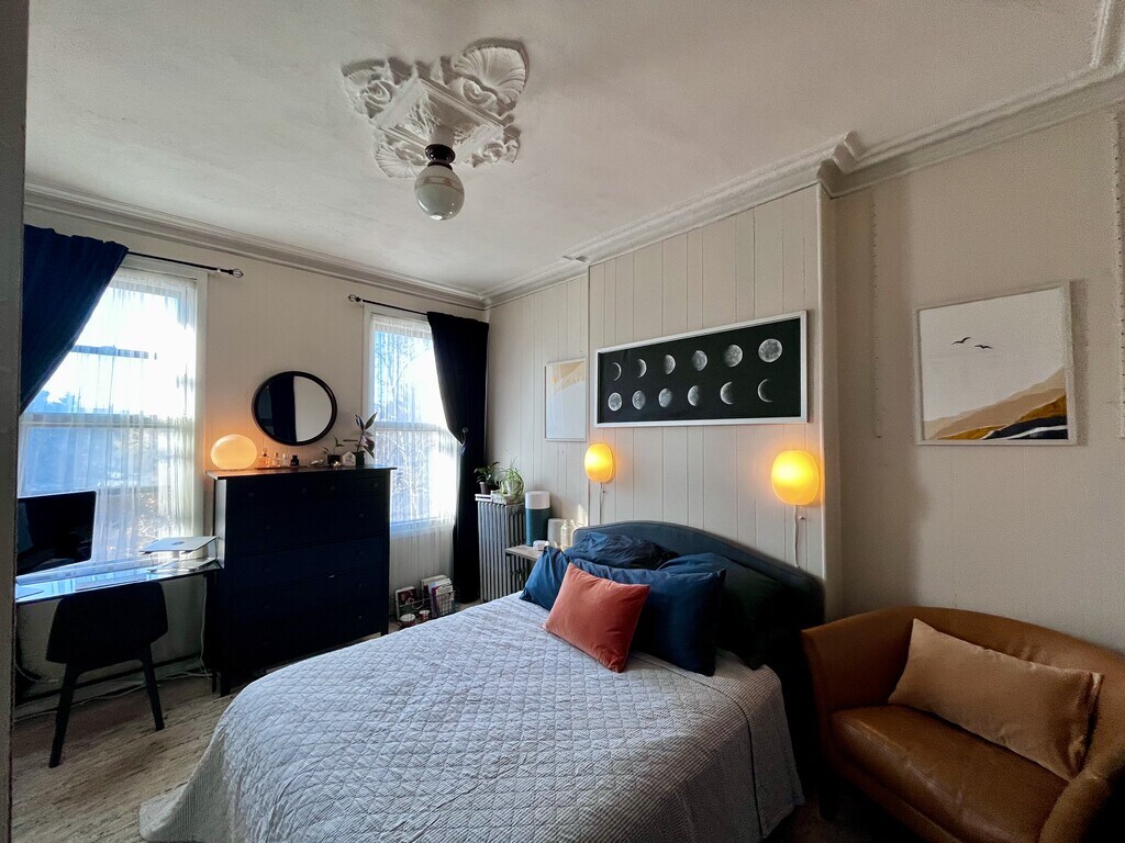 We have a sunny, two-plus bedroom floor-through apartment in our family-owned townhouse available for rent starting on November 15 for $3650/month. All floors of the building have soundproof windows from CitiQuiet installed on the street side of the building. There is in-unit laundry: a large-capacity combination washer dryer has been recently installed. The space: - A large living room - An attached dining area - One large bedroom - One small bedroom attached to large bedroom, but with a private entrance to the main hall, also with a large closet - A third room, currently used as a bedroom that has been used a home office, nursery, and den in the past - A good-sized kitchen with full-sized appliances that has been renovated six years ago A good-sized bathroom with a full-sized tub and a large linen closet that has also been renovated six years ago We are pet friendly and child friendly, with stroller parking available by the front door. There is also some hallway storage for shoes, coats, etc. and additional hallway storage for luggage or a few boxes Free WiFi is available, as is extra storage in the finished basement. Location: Located in the south end of Park Slope, less than one block from a fairly recently renovated R subway station and the B63 bus line. It's a 15-minute walk to beautiful Prospect Park and a 10-minute walk to the spectacular Green-Wood Cemetery. It's also a half-block from three recently renovated grocery stores. Feel free to reach out if you have any questions!