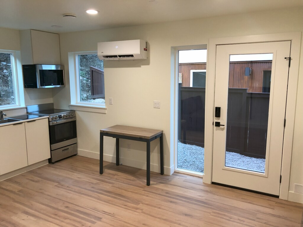 Welcome to Rosemary Lane! Enjoy a low-density mountain lifestyle with all the conveniences of a modern home close to downtown Durango. Unit B is partially furnished ADU in a new construction home. * The first all-electric, Zero Energy Ready neighborhood in Durango * Located just 1 mile from Main Avenue and downtown Durango * Private and scenic mountain setting with sunny southern exposure * Features a 1.2-acre private nature park next to the year-round Lightner Creek * Easy access (less than 1 mile) to trails at Twin Buttes, Overend Mountain Park behind the Tech Center, the off-leash dog park, and Animas River trail * New construction (Dec 2024) with contemporary, high-quality finishes * Unit B is an attached accessory dwelling unit with a separate entrance and yard. It is a small, fully equipped studio that comes with a sofa bed and an adjustable dining table; closet shelving unit; TV wall mount (not pictured); and 4’x6’x7’ exterior storage shed. Parking is available on the public street. * Full kitchen (range, oven, dishwasher, microwave); small built-in storage cubby, in-unit washer dryer combo unit, heating and air conditioning, Ring doorbell, smart lock, WIFI * Super energy efficient and low utility costs – the home is Zero Energy Ready certified; utilities are not included and will be billed by based on actual usage and charges allocated between the ADU and main home * Super healthy – the home has an Indoor Air Quality ventilation system and no gas burning appliances * Pets considered on a case-by-case basis, extra pet rent and deposit would apply