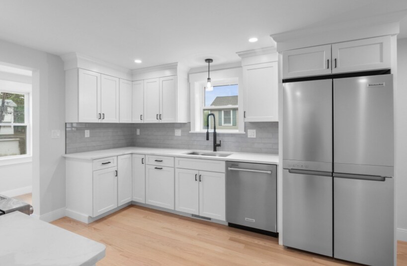 Be the first to live in this stunning new construction townhouse on a quiet street just steps from downtown Woburn. Experience modern luxury, spacious living, and exceptional finishes perfect for those seeking comfort and style. Property Highlights: 4 spacious bedrooms, including a private primary suite with en-suite bath and large closet 3 full bathrooms with contemporary tile and upscale fixtures. Open-concept living/dining area perfect for entertaining. Beautiful Oak hardwood floors throughout the home. Gourmet kitchen featuring: Quartz countertops, Modern cabinetry, Premium KitchenAid stainless steel appliance package. High-efficiency HVAC system for year-round comfort 200-amp electrical service for reliable modern power needs Central air conditioning. Finished lower-level bonus room ideal as an office, gym, guest suite, or playroom. In-unit laundry.