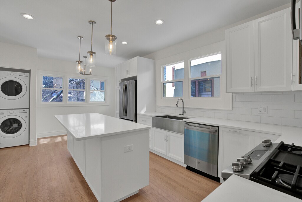 Beautiful 3 bedroom 1 bathroom rental unit in the perfect location, steps away from the La Grange Road train station and downtown La Grange. First floor rental unit is completely renovated and features a stunning kitchen, complete with new appliances, 8-foot island, in-unit washer/dryer and a breakfast nook area. Unit includes nicely sized bedrooms and a cute, completely updated bathroom. Hardwood floors throughout and one off-street parking space is included. Owner pays for water. Tenant pays for gas and electric. Security deposit and 1st month's rent due at signing. No smoking allowed. One small pet is allowed with a Pet Fee. **Owner is a licensed real estate broker.