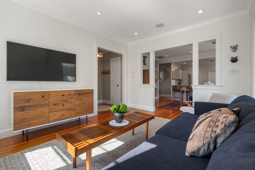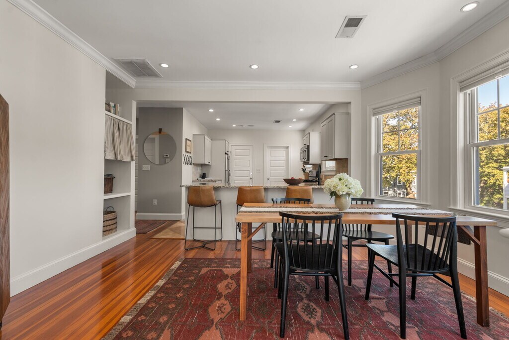 NO BROKER FEE! Available January 15th 2026. Tucked in the heart of Roslindale Village, this top-floor 3-bedroom condo perfectly balances everyday ease with neighborhood charm. Wake up to sunlight streaming through the open-concept living space, sip morning coffee on your private deck, and enjoy easy access to local cafés, shops, restaurants and the commuter rail. The inviting layout connects a stylish kitchen, dedicated dining area, and airy living room - ideal for hosting friends or relaxing at home. Built-in bluetooth speakers set the scene for any occasion while central air, in-unit laundry, off-street parking, an abundance of storage in the unfinished attic, as well as extra storage in the basement make daily life effortless. With thoughtful details and a vibrant location, this home delivers the best of city living with a warm, neighborhood feel. Reach out today for a tour!