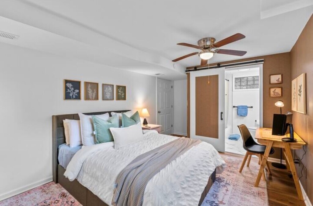 Property Overview: Come stay at this newly renovated, 1,000 sq ft private Garden Apartment located in the heart of West Asheville. Just 1 mile from Haywood Road's vibrant shops and restaurants! You'll be just 10 minutes from Downtown Asheville and the Biltmore Estate, making it the perfect location whether you're working, exploring, or simply recharging. Designed for comfort and functionality, this 2 bedroom, 2 full bath apartment includes a fully equipped modern kitchen, cozy fireplace, and thoughtful touches throughout. Relax under the stars or unwind by the fire pit in the fully fenced backyard. ??? Interior Features: • 2 Bedrooms with Queen Beds (Murphy bed in 2nd bedroom for flexible use) • 2 Full Bathrooms (Updated finishes) • Built-in Living Room Fireplace • High-Speed WiFi • 2 Smart TVs (Living Room & Master Bedroom) • Ceiling Fans in Bedrooms • Work Desk w/ Chair • Washer & Dryer • Large Closets • Fully Stocked Kitchen with: o Dishwasher, Microwave, Stove/Oven o Essential Cookware & Utensils • Fresh Towels & Bedding • Curated Artwork, Books & Magazines • One-Level Living (No Stairs to Entry) ?? Outdoor Amenities: • Fire Pit with Seating • Fully Fenced Yard with Lawn & Garden • Private Driveway with Private Courtyard Entrance • Patio with Picnic Table & Large Umbrella • Quiet, Safe Residential Neighborhood Note: Upstairs unit is separately rented and has zero access to this apartment. ?? Pet Policy: • Pet-friendly for 1 dog up to 20 lbs • No smoking allowed anywhere on property ?? Lease Terms: • Rent: $2,125/month • Includes WiFi+ utilities • 1-Year Lease Preferred • 2 Person Max Occupancy • Short term leases available. Contact For Short Term Rates