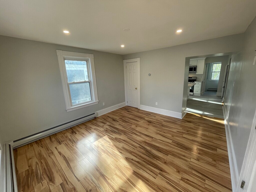 Located on a quiet side street in Beverly that is close to downtown, Beverly Hospital, Cummings Center, train, restaurants and more. Brand newly renovated 2rd floor apartment of a well maintained multi-family building. 2 Bedrooms, 1 Bathroom w/ tub, Living Room, Eat-in Kitchen with granite countertops. All new appliances, dishwasher and garbage disposer. Brand new cabinets, counters, freshly painted, newly tiled bathroom. Plenty of light, in unit new front load washer and dryer, shared screened in porch. Comes with built in AC unit in the master bedroom. Available 9/1. Brand new heating and hot water systems. 95% efficient boiler with baseboard heat. Plenty of on street parking available. Rent is $2800/mo + utilities (Gas & Electric). First, Last + $2500 Security required. 1 year lease required. Lead status is currently unknown. No Smoking on the property. Up to one cat or small dog considered for an additional monthly fee. If you are interested, please email and introduce yourself and your interest in the apartment.