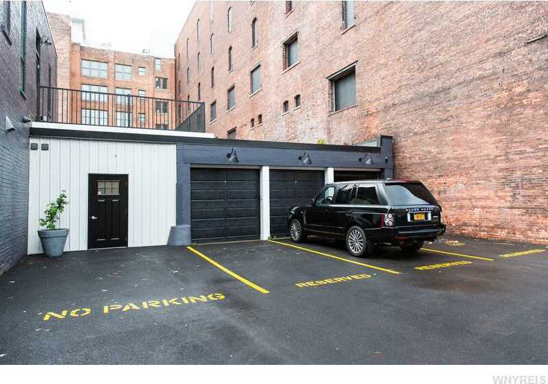Unique and perfect. Gorgeous apartment right in the heart of Downtown Buffalo with your own garage (two parking spaces) in a gated lot with PRIVATE ROOF TOP outdoor patio. Other great stuff - washer/dryer; new stainless appliances; hardwood floors; electric fireplace; two bedrooms; two custom bathrooms; Wi-fi included! Water included! Must see.