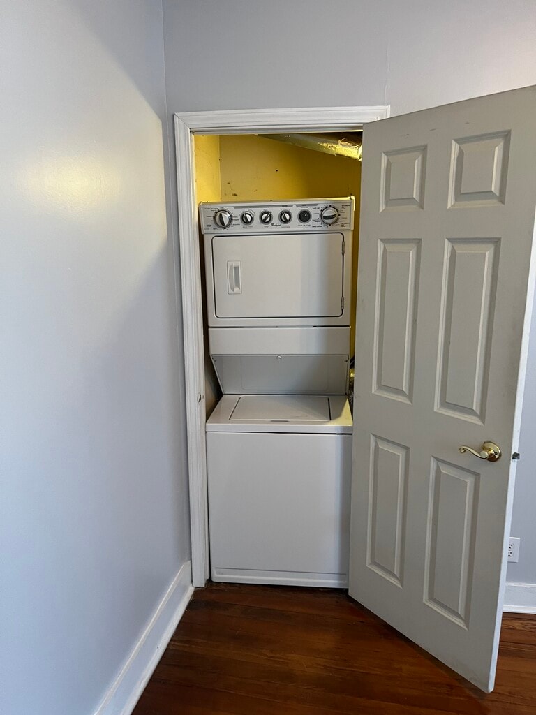 Amazing historical building, great location walk to Main St for coffee, shopping and more. Nearby Galena river has kayaking. There are many great restaurants and bars. There is a ski resort 20 minutes away. Inside the main floor has a bright living room with hardwood floors, formal dining room, updated half bath, and an updated kitchen. Also a stackable washer and dryer for your convenience. Upstairs you will find 2 bedrooms. Main bedroom is light and bright and very large. In the hall is pull down stair case to additional storage . 2nd bathroom has a double vanity, tub and shower. This unit also has central air.