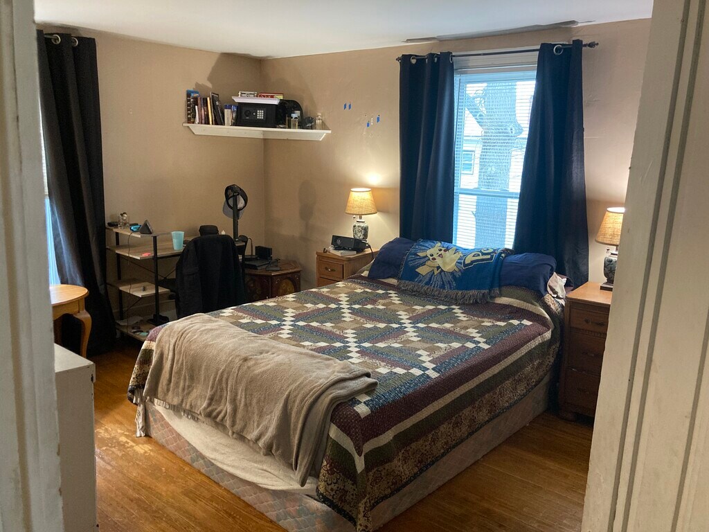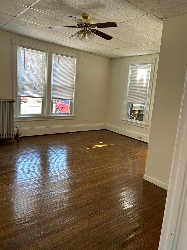 End unit with front porch and small backyard area. Parking for 1 vehicle included in monthly rent. Additional vehicle @ $15/monthly. Two large bedrooms and an additional room on second floor ideal for office space. Plenty of closet space.
