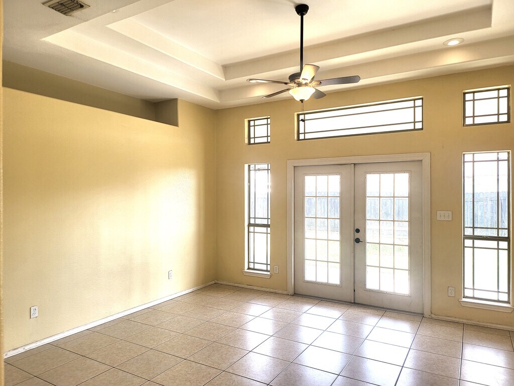 Located in a highly desirable area, this attractive brick home offers comfort, space, and style. With three spacious bedrooms and two and a half baths, there’s plenty of room for the whole family. The home features high tray ceilings, abundant natural light, and a bright, airy feel throughout. Step inside to find tile and laminate flooring, French doors leading to a covered patio – perfect for relaxing or entertaining. The thoughtful layout is ready for your personal touch – bring your design ideas and make it truly yours!