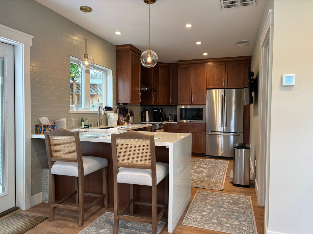 Fully furnished, 1BR/1BA private detached home (ADU) near Santa Clara University available for long-term lease up to 6 months mid-March through mid-September. Convenient to the university, major employers, and shopping. - Fully furnished including work-from-home sit-stand desk w/ 27” monitor, queen bed, and 65” smart TV - Luxury chef-grade eat-in kitchen w/ premium appliances (Bosch, Kitchenaid, Frigidaire Gallery). - Turn-key. Includes essential dishes, kitchenware, bedding, towels, etc. - Two generous closets with built-in organization - In-unit laundry and walk-in marble tiled shower - Private Patio - Off-street parking for 1 vehicle + abundant street parking - Some utilities included; tenant pays own electric, and portion of water/sewer/trash Available starting from 3/14/2026 through mid-September 2026. Price listed is for 5+ month lease (preferred). Shorter lease negotiable at higher rent. Property Policies - No smoking on premises - Background/Credit Check required - Renter’s Insurance required