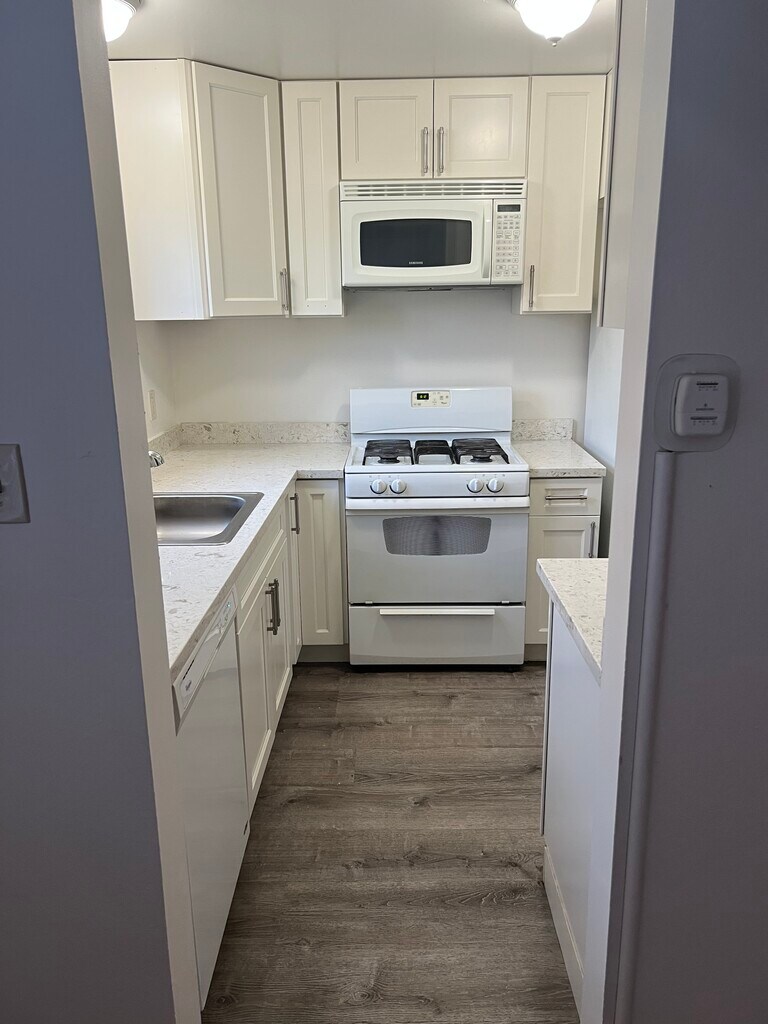 Quiet 2 bedroom 1 bath downstairs apartment with carport and storage. Air conditioning. Close to Montgomery village and Hwy 101. Rent includes water and garbage. Quiet building. Laundry room onsite. New flooring and newly remodeled bathroom and kitchen. Just painted as well. Wheelchair assess able.