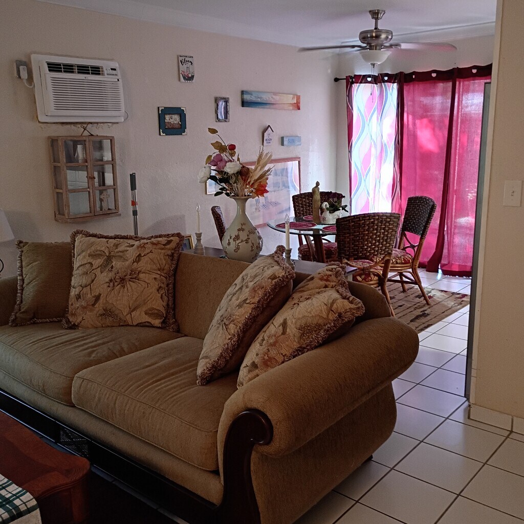 2/1 apartment close to beach and shopping. Full kitchen includes refrigerator with ice maker, dishwasher, oven/cooktop, microwave, washer and dryer. Water and trash pick up included. Small pets okay with approval and pet deposit. Paved parking.