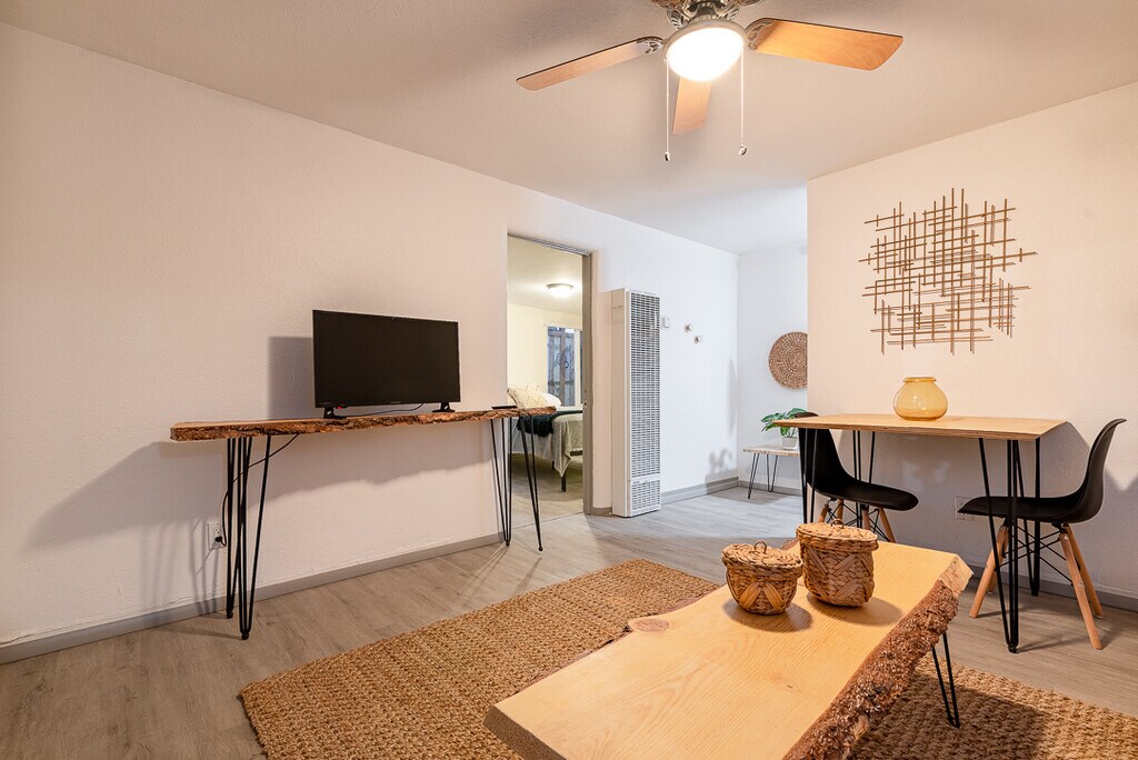 The Main House is fully furnished, with 2 Bedrooms, and 2 Bathrooms, a washer and dryer in the house, a private entrance, a private fenced yard/patio, and onsite secure parking. The Small House (rear house) is fully furnished, with 2 Bedrooms, 2 Bathrooms, a private entrance, a private fenced yard/patio, and onsite secure parking Fully Furnished Located near UNM, UNMH, and Presbyterian Hospital Walking distance from the best Breweries and Restaurants in Albuquerque Smart TV, Disney+, HULU, NETFLIX, HBO, Prime Common yard w/ fire pit and grills FAST Wifi Master bedroom with ensuite bathroom Tempur-Pedic bed Fully equipped kitchen w/ granite countertops Extremely safe neighborhood FREE Onsite secured parking