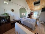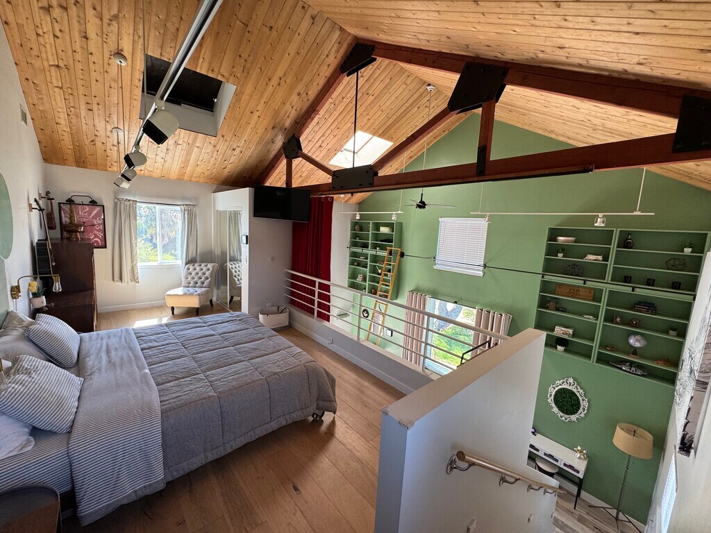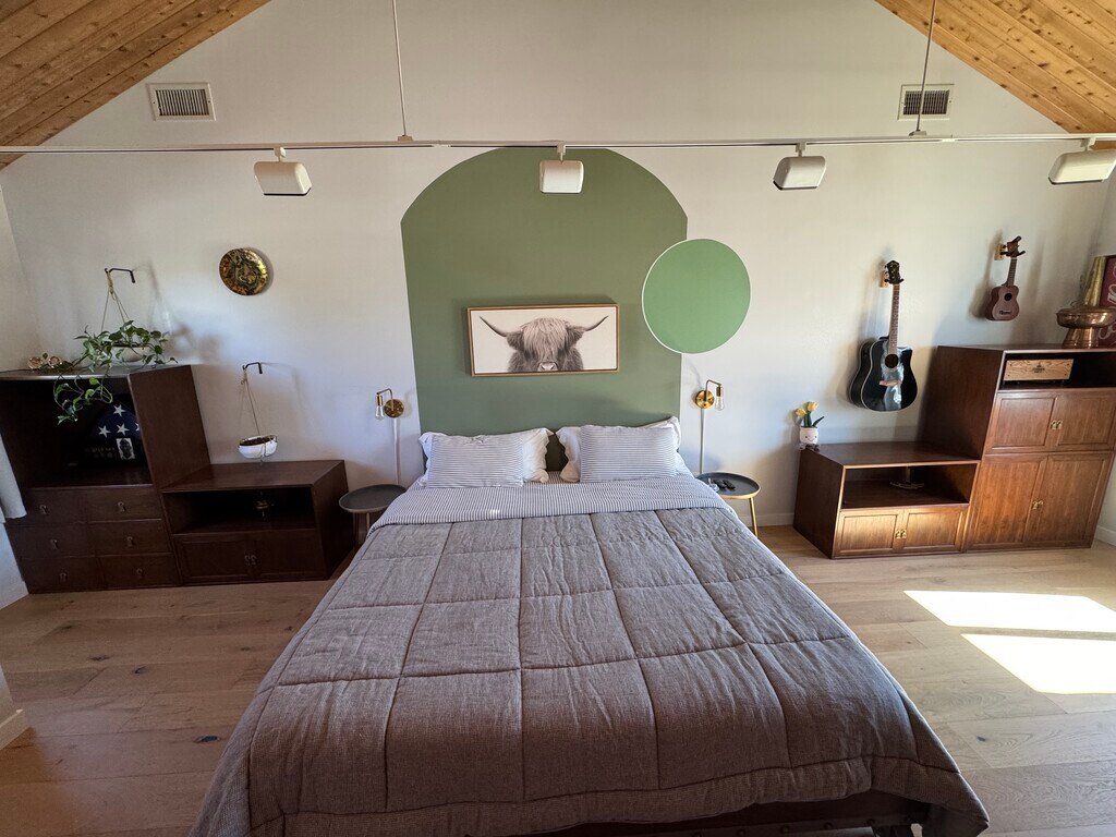 Beautiful attached, guesthouse, with private entrance. This property offers plenty of privacy and all of the relaxation that you need to concentrate on school or work. The property is available fully furnished for the monthly rate. We are open to short or long-term leases, and we reserve the right to deny renting our property to any and all customers. The property features an upstairs loft bedroom with a king bed and television and a large closet. Downstairs is a full kitchen and laundry room with a living room and plenty of places to sit and eat and enjoy yourself. There's a desk and work area and all amenities are included in the price. There are no pets allowed. We are a quiet family of three with a 10-year-old son and a small dog. This is definitely not a property to party at. There's plenty of street parking just outside the residence.