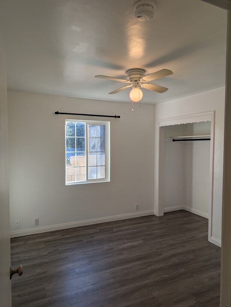 Property is a duplex and features dedicated on-site parking spots and available outdoor sheltered laundry hook ups for your convenience. Attic fan, bedroom ceiling fans, good insulation, and 3 mini-split air conditioning units create a very comfortable temperature inside the home. Quiet neighborhood with convenient short driving distance to many stores and restaurants nearby. Home is conveniently located about 5 minutes away from 10 and 60 freeways.