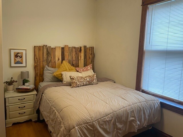 Available June 1st., completely renovated, super clean, two-bedroom second floor apartment in the rear of two story, five-unit building. Quiet, true Ukrainian Village landmark neighborhood with good street parking. Apartment is totally renovated while retaining original woodwork, and built-in hutch. Two large (queen-size) bedrooms, eat-in kitchen with separate dining area, living room and enclosed porch. Good closet space, plus storage locker. Central heat and air conditioning, dishwasher, disposal, and microwave. Laundry in basement, bicycle storage and nice backyard. Search 2217 W Rice Apt 2R on u tube for video Building on wide lot: means more natural light. Good bedroom layout for privacy. Large grocery two blocks away, and close to coffee, dining, night life, etc. CTA bus one block away. Convenient to Bucktown, Wicker Park, West Town, University of Illinois Chicago (UIC) and the Medical District (Rush, Cook County, V.A.) and the North Michigan Ave. area and the Loop (downtown). Non-smoking building.