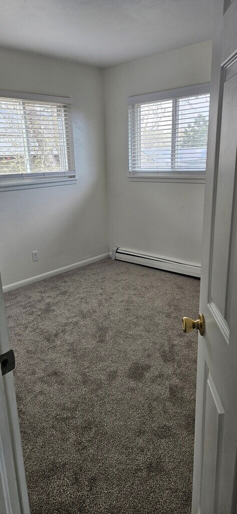 2Bedroom 1Bathroom 1garage. Fenced Yard. Laundry washer and dryer inside. Located on west side with easy access to I-25. Brand new carpeting in bedrooms. Brand new all weather flooring elsewhere. Brand new paint. Brand new refrigerator. Garbage disposal. New blinds. Remodeled bathroom, full refinished tub/shower, brand new tile, paint, baseboard fixtures. One garage space detached. Additional off street parking. Baseboard boiler heat. 850 sq ft. No smoking. Non aggressive pets are negotiable and only if written into lease, cannot add pets without telling me. Gardeners welcome. Utilities not included. This upper unit is address 2219 Cooper Ave, Colorado Springs, CO 80907. The lower unit 2221 is not for rent. Text any questions or for private showing. I screen my calls so text first works best, then a phone call directly afterward is fine to speak in person. Address: 2219 Cooper Avenue, Colorado Springs, CO 80907 upstairs unit of a duplex Also on FB MP with a 1 minute video as 1st picture. Also on CL where a link to a one minute YT video shows the unit. Steele Elementary School 1 mile Holmes Middle School 1.1 mile Coronado High School 1.4 miles Sonderman Park. .7 mile. Bicycle path to downtown a block away, then 2.5 miles downtown on bike path. Buena Vista Montessori School, 6 minutes, 2.8 miles away 2 short blocks to bus transit on Chestnut street. 2 miles to King Soopers at Centennial and Fillmore. 2 miles to King Soopers at 19th and Uintah. 4.4 miles to Garden Of The Gods First, last, security deposit. 50% off 1st month's rent, pet fee range $200 cat to $400 larger dogs, may waive fee if depending on personality of pet when we meet pet. Open House May 11 Saturday 9am - 1pm. Move in special 50% off 1st month's rent.