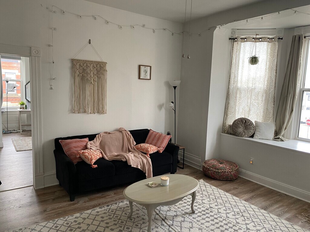 A must see large 2 bdrm 2 bath apartment with lots of natural light. The apartment comes with central air, fully equipped kitchen, off-street parking, washer and dryer. A great location within walking distance to shopping, restaurants and entertainment.