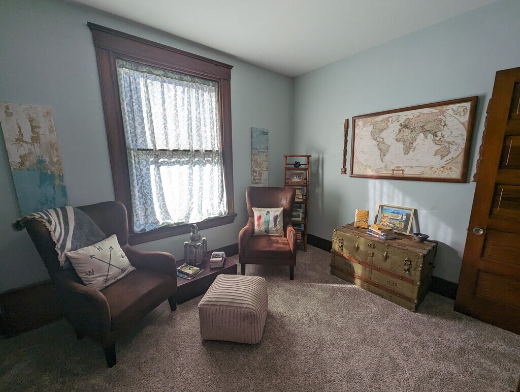 Large Bedroom with Queen Bed and Adjoining Office/Living Space in newly remodeled home close to downtown & highways: This unit is in Mt. Auburn and located between downtown/OTR, Clifton and Walnut Hills. Easy access to Eden Park, Highways 50, 71/75 and 471. The home was built in 1900 and still has much of its original charm, including a Rookwood fireplace, original hardwoods and the refinished original staircase. The kitchen has been renovated with white shaker cabinets, wooden countertops and stainless steel appliances. The home has 100% new electric, plumbing and energy-efficient HVAC. There is plenty of street parking. The bedroom is 16'x14' with an adjoining 10'x10' office and living space. The full bathroom is just down the hall, and the living, dining room and fully-equipped kitchen are on the 1st floor. Additional storage space is available in the basement, along with washer and dryer access. The rental is available starting October 1st. Flexible lease options available. More photos available on request.