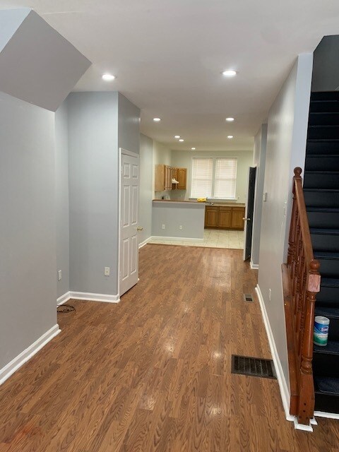 Located 4 short blocks from Johns Hopkins Hospital. Large remodeled townhouse with high ceilings. This home has 3 large bedrooms, 1+1/2 bathrooms, hardwood floors, newer bathrooms, large kitchen leading to a deck and fenced in backyard, opened living and dining area, washer and dryer. Available for immediate move in. Tenant pays water, gas, and electricity.