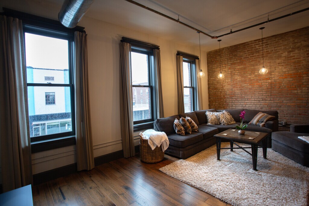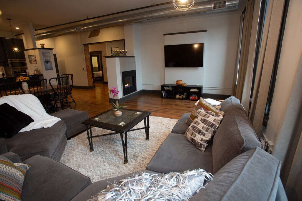 This is a spacious loft with top tier finishes, in the heart of an historic district. It is fully furnished and turn-key ready. We understand the need for high quality features and comfort after a demanding day out there in the world. Our spacious, second-story loft combines the luxury of a gas fireplace, a jetted tub, and high end finishes with the practicality of a dedicated office. Large windows offer a sweeping view of the Commercial Street Historic District. A few steps away you will find coffee shops, bakeries, restaurants, and retail shopping. The loft is situated above the historic Savoy Ballroom and Dance With Me Studio. The hall, interior bedrooms and all three bathrooms are filled with light, thanks to solar tubes throughout the loft. Bedrooms #2 and #3 have butterfly valves which close to block off those sunny rays when you want a darkened room. The master bedroom has blackout curtains. On some evenings, typically Saturdays, some Fridays, and rarely throughout the week, you may hear music that varies in volume and always wraps up by 11:00 p.m. Generally this lasts about two hours or so. You may not notice some of the events because you are on top of 2,700 pounds of soundproofing! There is one reserved parking spot in a nearby surface lot and ample street parking. We would love to have someone enjoy this space and the street; someone who can appreciate the care and detail that went into renovating and maintaining this beautiful loft.