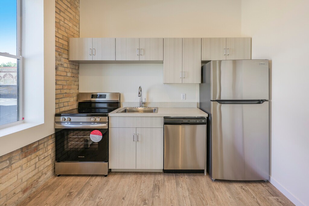 Brand new apartment in historic building! Super tall ceilings, lots of light. Brand new appliances, cabinets, kitchen, bathroom, heating, and air conditioning. Washer and dryer in-unit. Parking Free city parking is available in the parking lot just across the alley. Deposits and Fees $35 application fee Security deposit equal to one month rent Renters Insurance is required Utilities Paid by resident Items allocated to each tenant (bill split equally among tenants) Water, Sewer, Hot water, Garbage Items billed directly to resident Electric Pets Well behaved dogs and cats allowed Max 2 per apartment Additional non-refundable deposit $250 per pet Additional pet rent $30 per pet