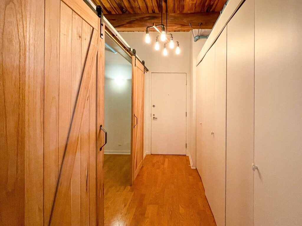 Stylish 1BR Loft in Prime River North Location Modern Updates & Historic Charm Live in the heart of it all with this stunning 1-bedroom loft in the sought-after Huron Street Lofts. This beautifully updated home blends authentic urban character with modern comfort perfect for city living or a chic pied-a-terre. Step inside to find: Expansive open floor plan with soaring timber ceilings and exposed brick walls Wide-plank hardwood flooring throughout Contemporary kitchen featuring brand-new stainless steel appliances, sleek cabinetry, and a breakfast bar for casual dining Custom barn doors leading to a spacious bedroom with ample closet space In-unit laundry and a recently updated bathroom for ultimate convenience The building offers excellent amenities, including: Secure entry with evening doorman Roof deck with breathtaking skyline views A vibrant, walkable location just steps from world-class shopping, award-winning restaurants, and buzzing nightlife