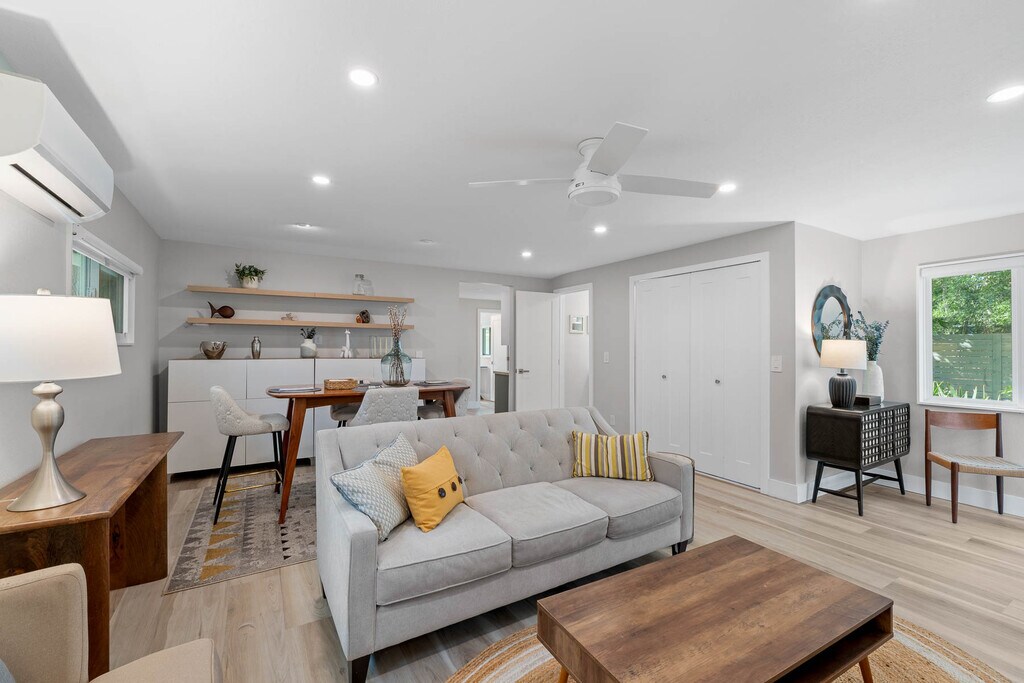 Stylish Garden Villa in Vibrant SoDo District: Discover the perfect blend of modern living and historic charm in this completely renovated, FULLY FURNISHED garden apartment south of Downtown Orlando. With a private entrance and dedicated parking, this serene retreat amidst lush landscaping offers convenience and comfort in equal measure. Inside, you'll find a chic, thoughtfully designed space featuring 2 bedrooms and 1.5 beautifully updated baths, all new stainless steel appliances, LVP flooring thru-out, lots of storage, washer and dryer for a relaxed yet stylish lifestyle. Private outdoor patio. Step outside and immerse yourself in some of Orlando's most sought-after historic neighborhoods, known for their picturesque lakes, walkable parks, and tree-lined streets. Just minutes from Downtown Orlando, you'll enjoy easy access to dining, entertainment, and culture while savoring the tranquility of this charming community. Walk to Wadeview community park with a pool, picnic tables, exercise trails and playground. Key Highlights: *Completely renovated, modern interiors *Fully furnished with everything you need *Private entrance and parking *Close to scenic parks, lakes, and vibrant downtown life *Don't miss the chance to experience sophisticated city living with a touch of garden charm!