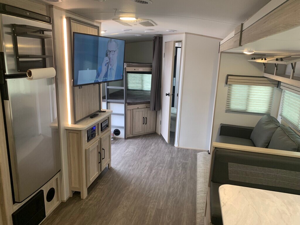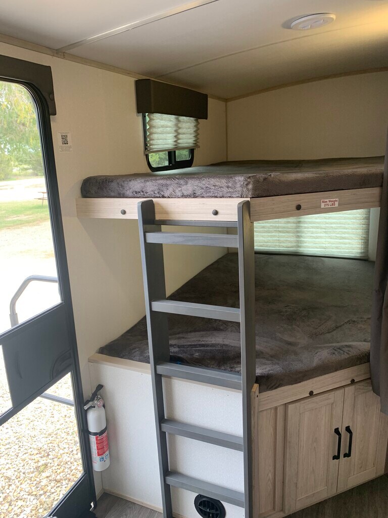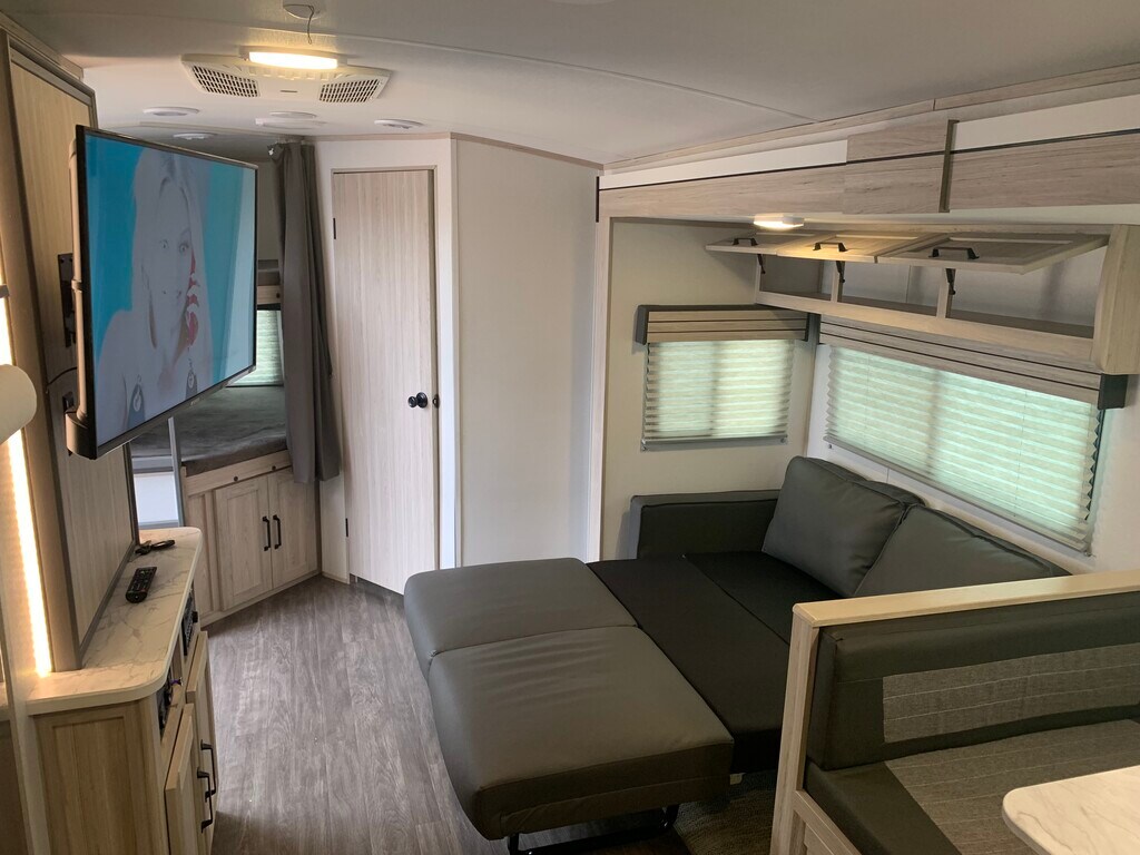 Rentable RV home with a private yard that is always lit. The unit is completely autonomous. All of the furnishings is included, including the bed, pull-out sofa, TV mounted on the wall, bathroom, and grill. It can accommodate two or up to three people. Includes water utlities. Unidad en alquiler (casa mobile fijada a la casa); patio privado iluminado todas las noches. La unidad es totalmente independiente. Tiene todos los muebles incluidos: muebles de cocina, cama, sofá cama, TV colgada en la pared, baño, parrilla. Es adecuada para 2 o máximo 3 personas. Los servicios de agua están incluidos.