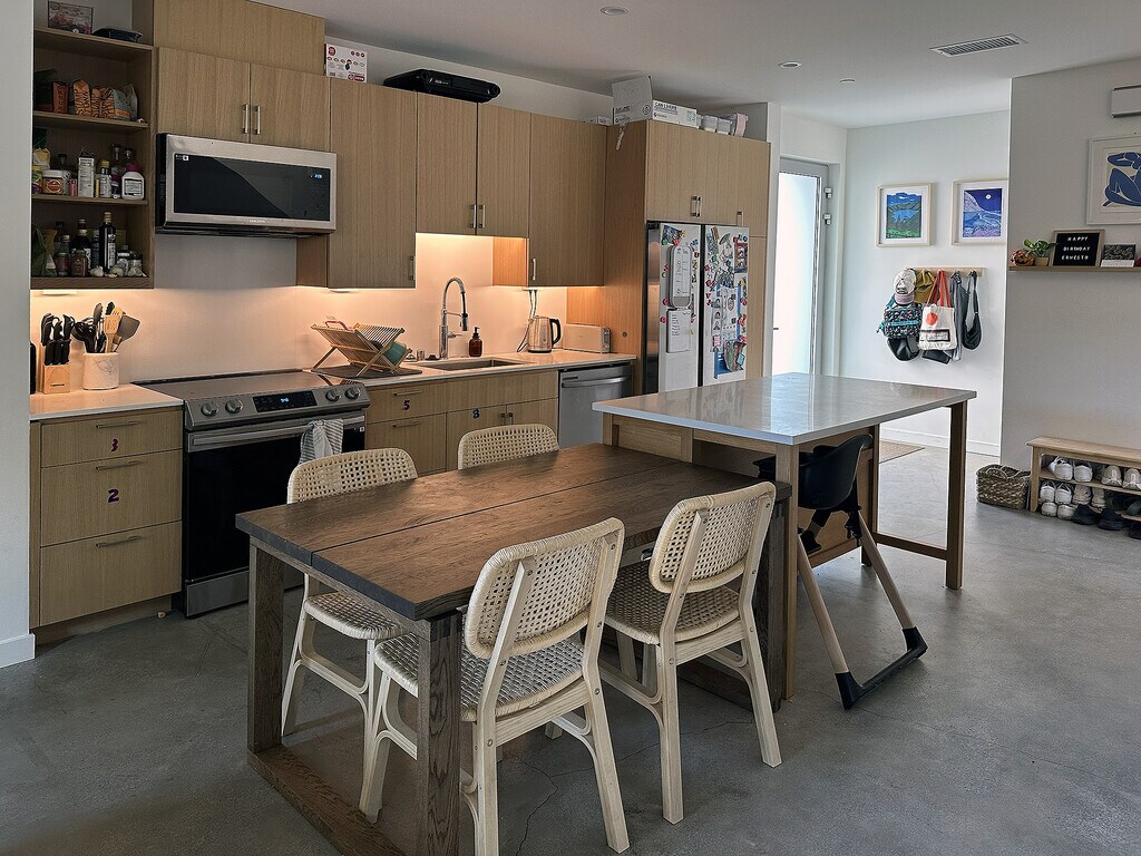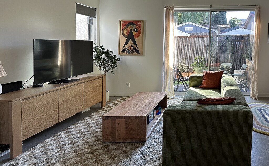 Modern 3 Bed, 3.5 Bath House in Silver Lake. Welcome to your new, ultra sustainable modern home in the heart of Silver Lake. Start your day with chilaquiles rojo from Salazar, steps away. On your walk home stop by Whole Foods 365 just across the street for fresh fruit and a box lunch for a relaxing afternoon with friends on the Silver Lake Meadow. Or take the short walk to the Silver Lake dog park. After lunch return home and lounge in your private, sunny, south-facing yard. As the sun sets head to Silverlake Wine for happy hour with friends, and don’t forget to ask for recommendations on the best biodynamic, organic, bubbly orange, or other specialty wine of your choice. Then it’s off to dinner – some of our personal favorites are Edendale, Blair’s, Gingergrass, or Salazar, but with so many choices so close by the world is your oyster (speaking of which, don’t forget L&E…). And no night would be complete without a night cap at Red Lion, surely one of the best German Beer Gardens in all of Los Angeles. All without unplugging your car from your personal, dedicated charger fed by your own rooftop solar panels in your own off-street parking space. And speaking of cars, if you do need to drive know that you are moments away from the 2, 5, 10, 101, 110, 134, and 210 freeways. Or get to Downtown, Glendale, Hollywood, Pasadena, or East LA without getting on freeways at all – your choice! Plenty of street parking also available for you and your guests. Landscape architecture with native, water efficient, and pollinator-friendly plants by award-winning Terremoto. Architecture by local Green City Building Company. The home: Three bedrooms and three and a half bathrooms, approximately 1250 square feet plus a private, south-facing patio. Dedicated parking with a 220V car charger, and an owned solar system feeding your meter, not ours. Ultra sustainable with all electric systems (no fossil fuels), infinitely recyclable and fully insulated aluminum windows and doors, polished concrete and solid bamboo floors (no vinyl), private solar and car charger systems, heat-pump based water heating and HVAC, and rainwater runoff treatment systems. For privacy the home has solid core doors and up-to-the-minute sound insulation systems. White oak and walnut cabinetry throughout, vaulted ceilings, and bathrooms feature classic subway and penny tile with Delta fixtures. Includes new full size LG laundry washer and dryer and a full Samsung kitchen appliance suite including 36” fridge and a dishwasher. The range hood vents outside of course, it does not recirculate back into your unit.