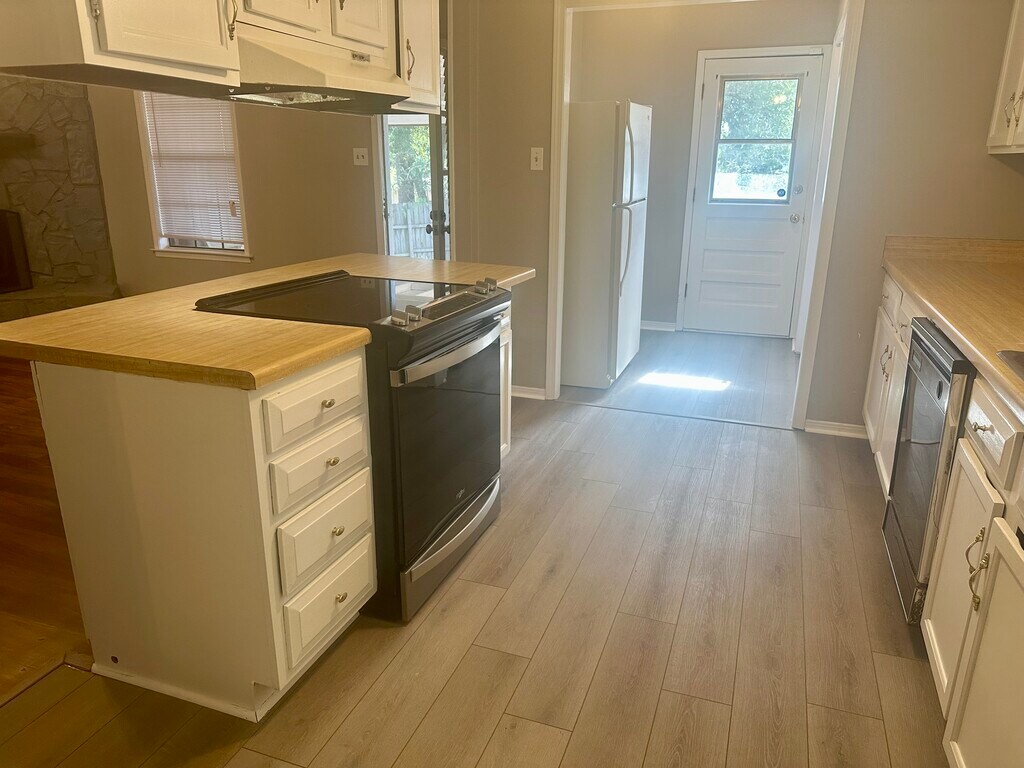 Welcome to this beautifully updated single-family home located in a quiet, established neighborhood of West Mobile. With 1,657 square feet of living space, this 4-bedroom, 2-bath residence offers comfort, functionality, and modern style. Property Features: • Bright and open living room with vaulted ceilings and a stone fireplace • Updated kitchen with center island, ample cabinet space, and modern appliances • Separate dining area ideal for family gatherings • Screened-in deck overlooking a spacious backyard — perfect for relaxing or entertaining • Freshly painted interiors with a blend of new flooring and all bedrooms • Durable metal roof and a welcoming covered front porch • Washer/dryer hookups and central heating & cooling Property Details: • 4 Bedrooms | 2 Bathrooms • 1,657 Sq Ft • Driveway parking • Pet-friendly (subject to approval) • Convenient to schools, shopping, and major routes