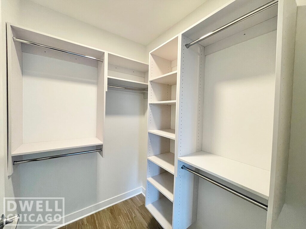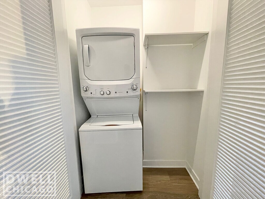 This 1 Bedroom apartment feature wide-plank flooring; floor-to-ceiling windows; solar shades; soft-close cabinetry with under-cabinet lighting; quartz countertops and tile backsplashes; stainless steel appliances; built-in kitchen islands; walk-in closet with built-in organization system; walk-in shower; and in-unit washer and dryer.