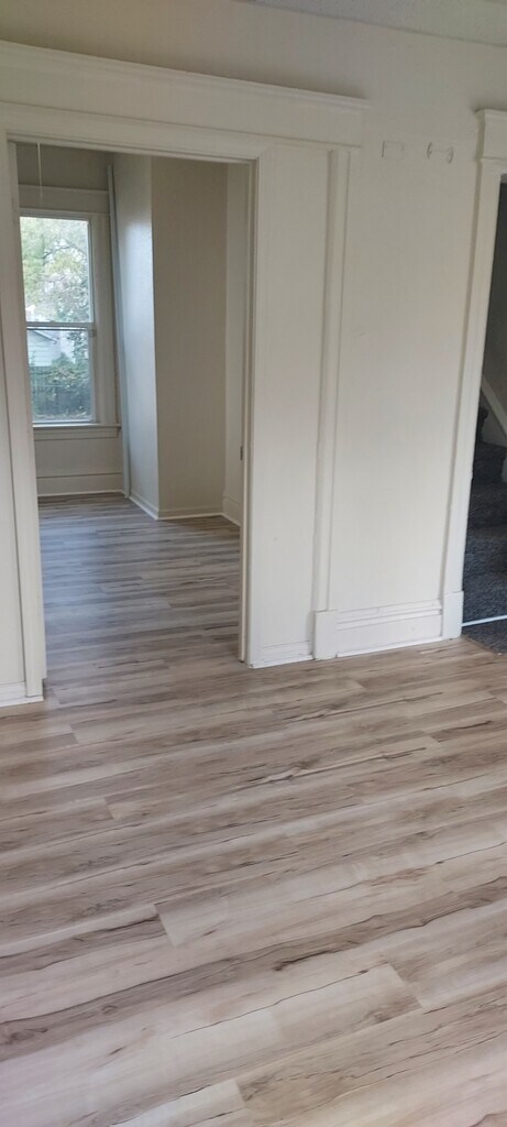 Spacious home with one large bedroom downstairs and three additional carpeted bedrooms upstairs. You will also find a kitchen with lots of cabinet storage and ample counter tops, vinyl plank flooring throughout the lower level, fresh paint, a second floor bath, washer.dryer hook-ups located in the basement, a partially fenced in rear yard, along with a cement driveway for convenient off-street parking. Available November 1st or sooner! SECTION 8 ACCEPTED! $75 water/sewer/garbage allowance per month, no pets, $25.00 application fee, 2 year lease.