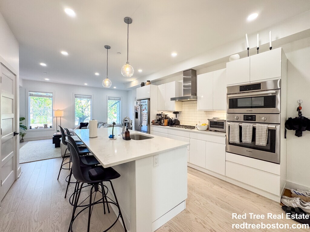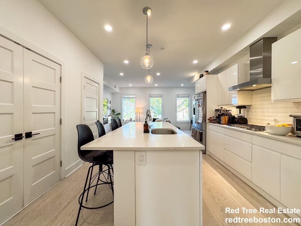 Move-In DECEMBER 1ST to JANUARY 1ST | Video tour available This stunning high-end condo was built in 2021, in East Boston’s sought-after Jeffries Point. This second-floor unit features 11’ ceilings, large windows, and a spacious open-concept layout with central air, an electric fireplace, and designer finishes throughout. Enjoy a chef’s kitchen with quartz waterfall island and premium Bosch appliances. Three bedrooms and two bathrooms, including a primary suite with double vanity, glass-enclosed tiled shower, and walk-out balcony. Garage parking for rent. Cats and small dogs allowed. Prime location: Just blocks from Piers Park, the waterfront, and Harborwalk trails. Quick access to the Maverick T station (Blue Line), East Boston Greenway, local coffee shops, neighborhood favorites like Cunard Tavern and The Quiet Few, and the Seaport via water taxi.