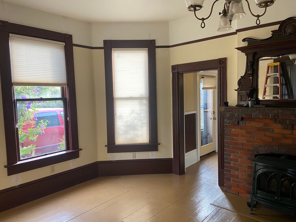 Beautiful Victorian 2 bedroom 1 bath apartment. Large kitchen with pantry, family room with Gas fire place, beautiful shared yard. Gated driveway parking with remote . PG&E, garbage, water and sewer included.