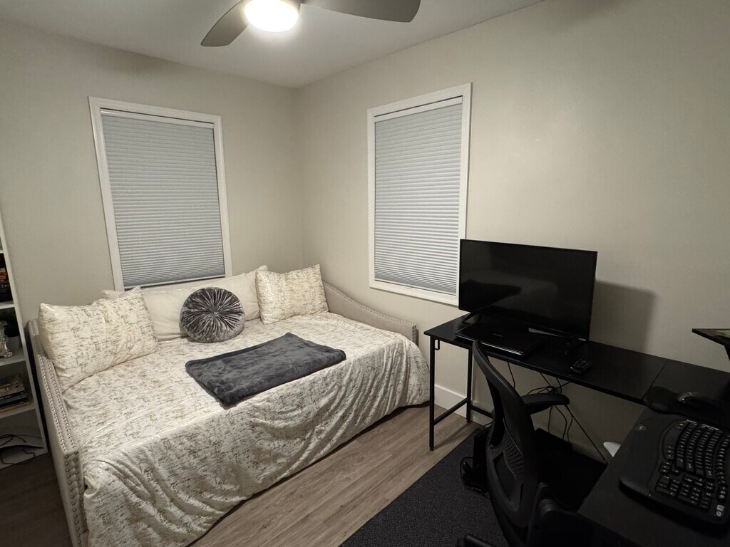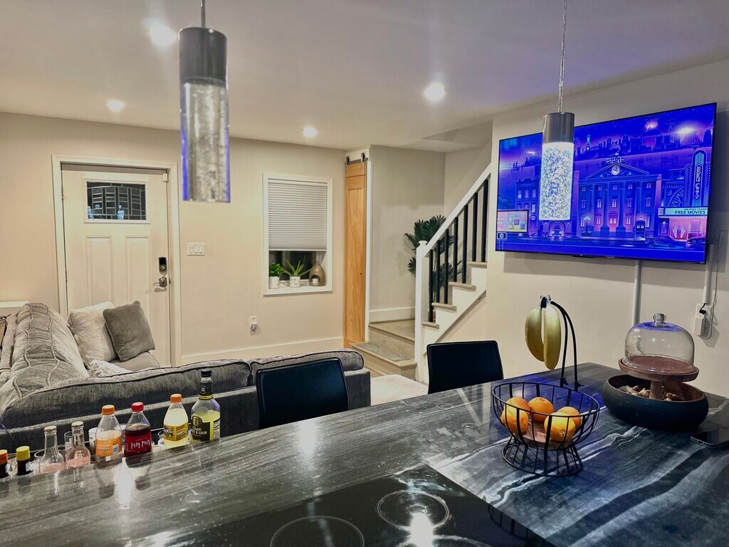 2 bed / 2 bath Townhome 5-minute walk to Huntington metro. 5-minute drive to Olde Towne Alexandria and DC and 5 miles from the Pentagon. Beautiful enclosed deck. Home is partly furnished including washer/dryer, a living room couch, bar stools, 65” wall-mounted tv on main level, deck furniture, a 50” wall mounted tv outside on deck. Guest room is furnished with a day bed and office desk/chair. You would only need to furnish the main bedroom! Can remove furniture upon request. Off-street paved parking for 2 cars and a visitor’s pass for street parking. 240V EV charging unit installed.