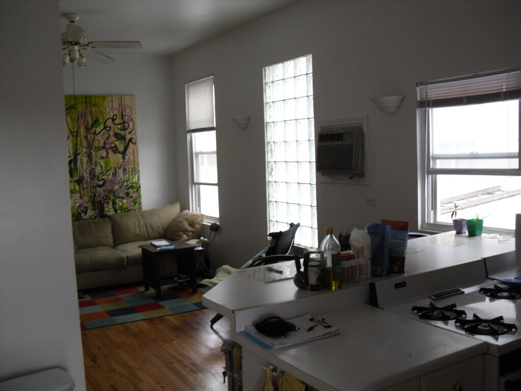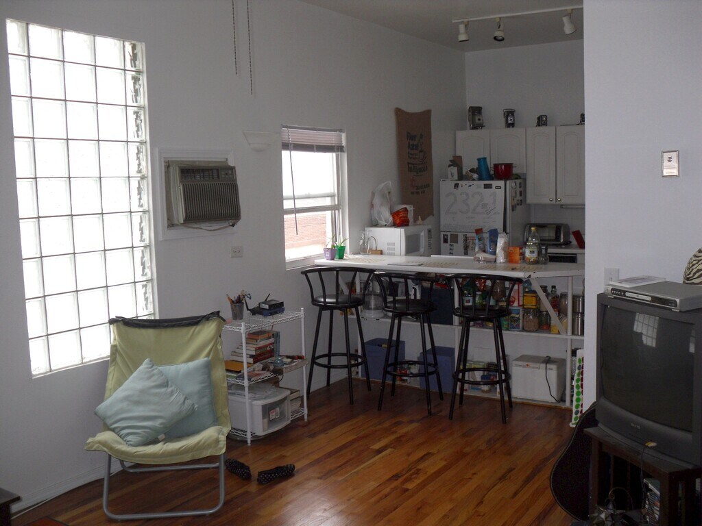 Roscoe Village... Antique Row.... huge community deck, great for barbecues with friends. Laundry in building, Stainless Steel with granite countertops and island counter, dishwasher, AC and central heat, hardwood floors, ceiling fans, great building! Pets Allowed, $150 fee per cat or $250 per dog. both one time fee.