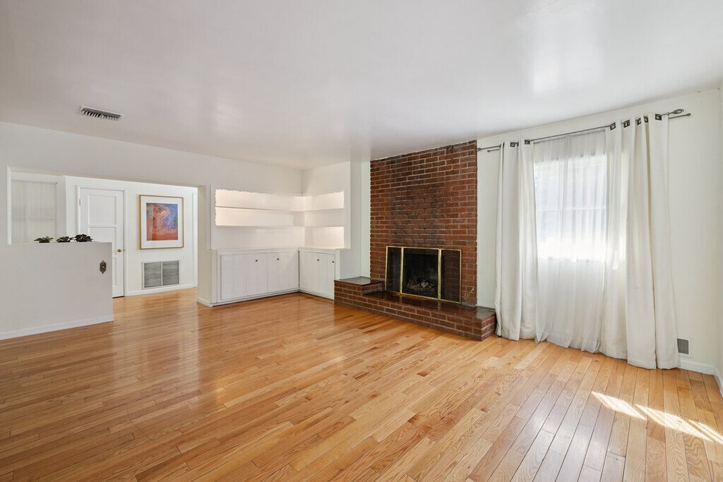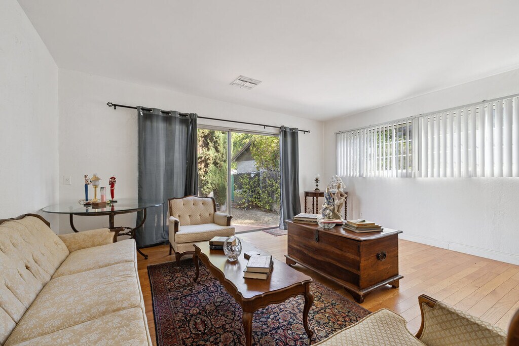 Discover this charming single-story house in Walnut Acres, featuring 3 bedrooms and 2 baths on an impressive 9,280-square-foot lot. The main house offers a spacious 1,800 square feet of living space, complemented by a separate attached 440-square-foot unit. The inviting family room, enhanced by beautiful beamed ceilings, radiates warmth and character, while the living room showcases a classic brick fireplace, creating a cozy atmosphere for gatherings. Enjoy formal dining in style, and take advantage of the circular driveway that ensures easy access and ample parking, complemented by an attached two-car garage for your convenience. Step outside to discover a beautiful backyard, ideal for entertaining or cultivating a relaxing garden retreat.