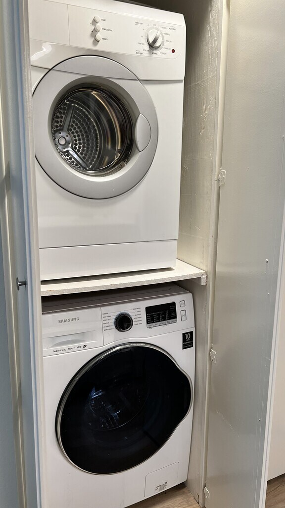 This truly is a must see! Everything you need to call home is waiting for you in this ground level end unit with a laundry washer and dryer inside the unit. This private single level unit features crown molding, beautiful wood grain laminate floors, fresh paint, window coverings, a master suite with a walk-in closet, a kitchen furnished with a refrigerator, range and dishwasher. You'll also appreciate the comfort of central air conditioning and heating, a reserved covered parking with a large cabinet for storge. Don't miss the opportunity to live in this desirable residential community in beautiful Mission Viejo, centrally located near restaurants, a Target store, 24 Hour Fitness, and William S. Craycraft Park within walking distance, Utilities included are water and trash service. Don’t miss out—schedule a viewing today! Security deposit $1,000. No additional monthly fees.