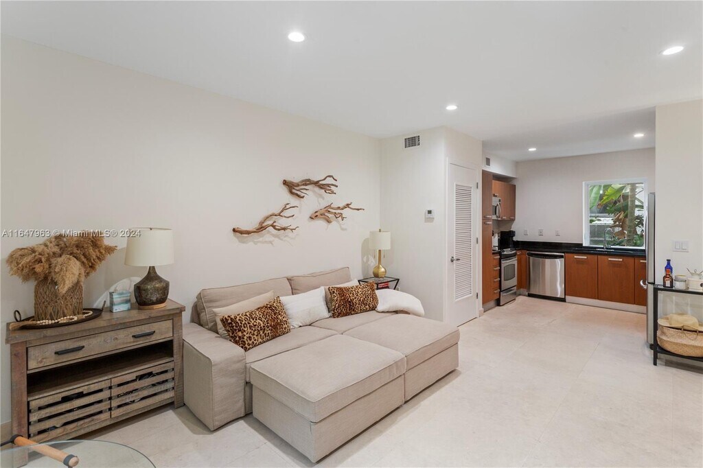Private, convenient townhouse living South of Fifth. This rare furnished 925 sq. ft. Two-story one bedroom PLUS DEN residence is one of only 7 townhomes in boutique Claris with a gated courtyard at a prestigious address. Building renovated 2005; partially furnished, comfortable design with large common spaces downstairs and master suite & Den upstairs, 2 full bathrooms, limestone & bamboo floors, European kitchen, natural lighting. 1 parking. Walk to the beach, South Pointe Park, marina & restaurants.