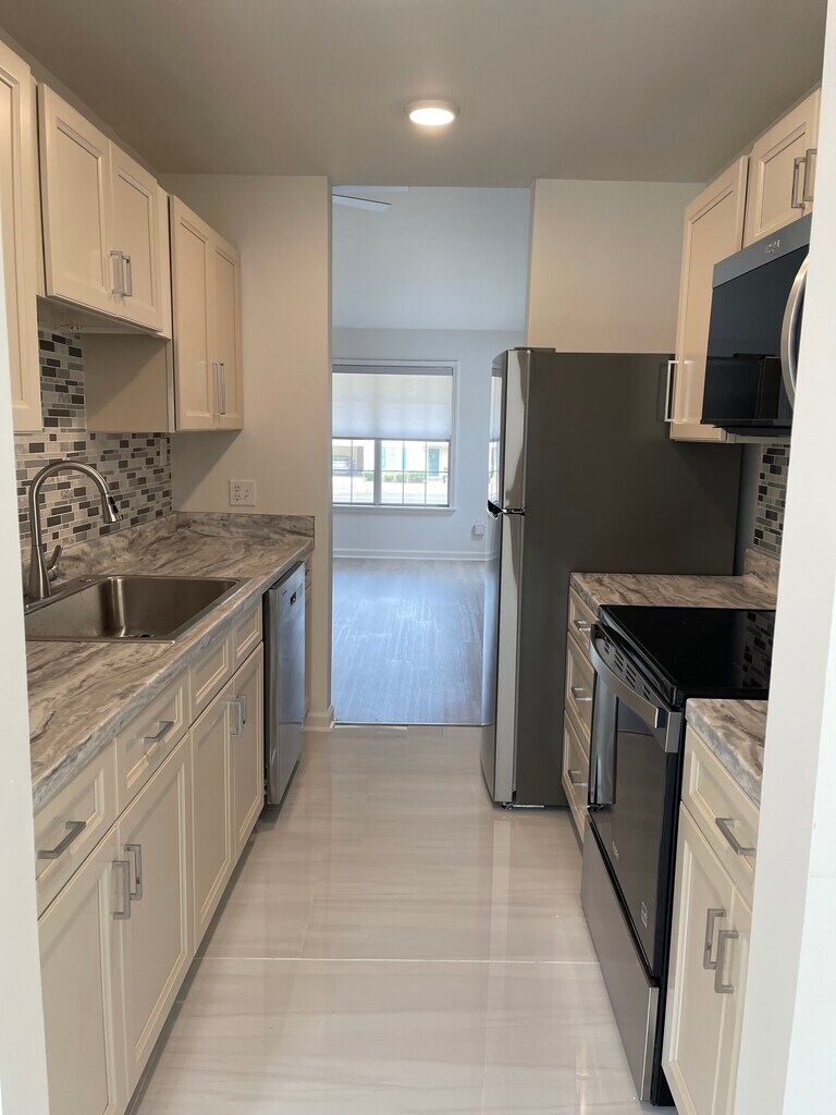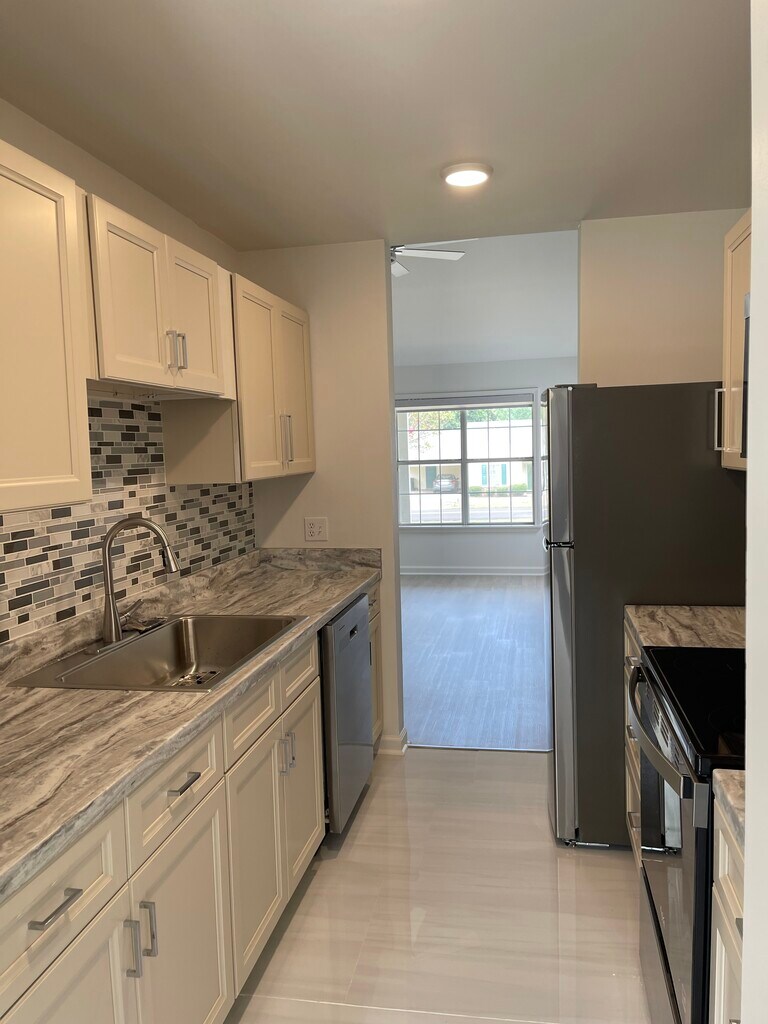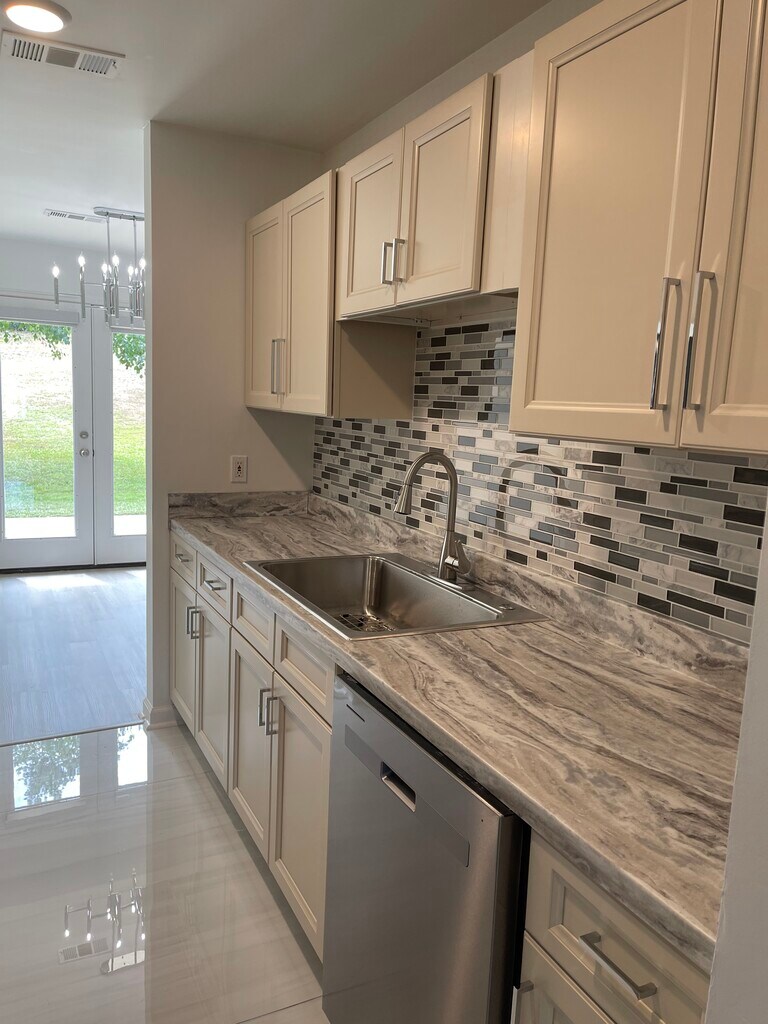 New roof, HVAC, water heater, light fixtures, flooring, paint, bath vanity, hardware, kitchen, toilets, large yard. This house has cathedral ceilings, nice size bedrooms and a large yard. It has been fully renovated inside. New pantry and a large garage