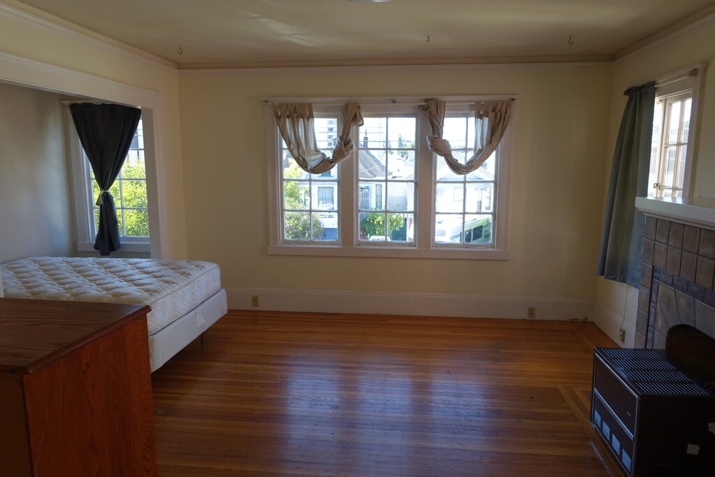 Located in an attractive 4-unit building in UC Berkeley's popular "southside" neighborhood, this apartment has 4 bedrooms (1 is very large), 2 full bathrooms, and a large living area. The remodeled kitchen includes a dishwasher, cabinets, and countertops. Two bedrooms and 1 bathroom were added to the apartment as part of another remodel several years ago. The apartment maintains charming 1920s details, including hardwood floors throughout, and is in very good condition overall. It has its own private entryway from the street. There is a washer and dryer inside the apartment, as well as an in-demand water heater (tank-less, energy-efficient). The UCB campus is just a few blocks away. Square footage is approximate. 6 students maximum occupancy. No smoking. No pets. Garbage included. One off-street parking space (gated) can be rented for $110/month. Available June 1.