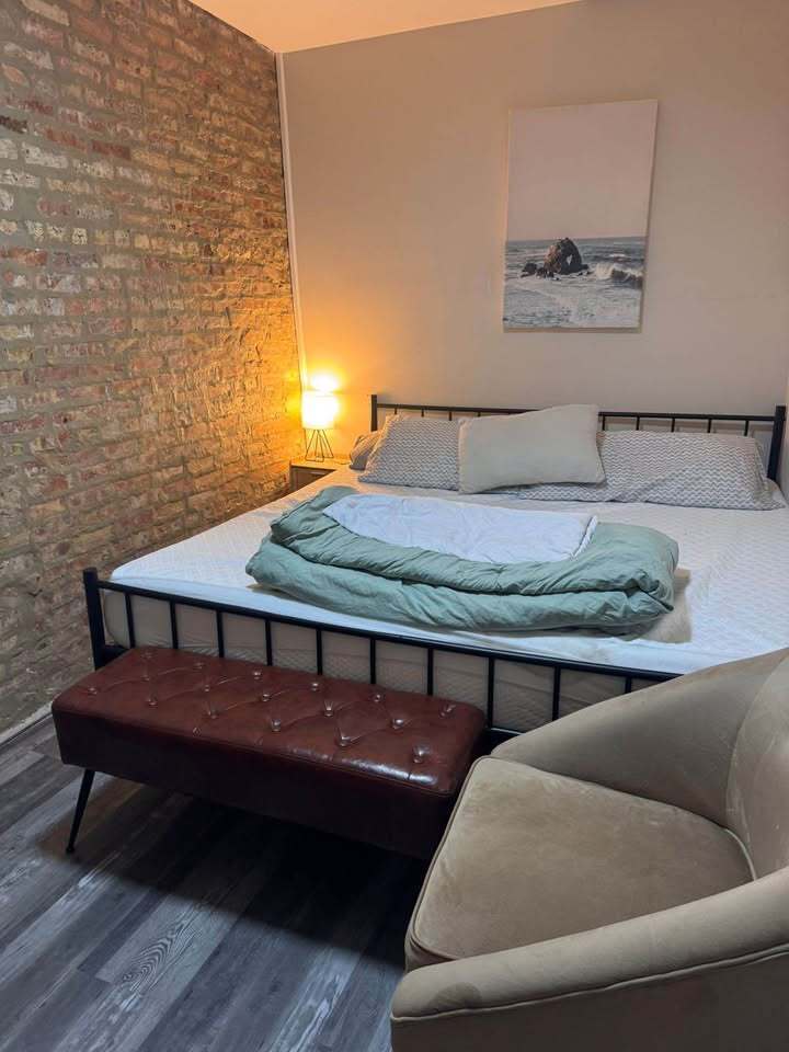 3 bedroom 1 bathroom Completely furnished, newly rehabbed apartment! $1800 Rent Light, Gas, and Internet not included $855 Move in Fee Beautiful, completely furnished, recently remodeled 3 bedroom apartment only 15 minutes away from down town Chicago! -2nd Floor Apartment -Central Heating and AC -Coffee Pot -2 Televisions -Dishes/utensils/pots & pans -Exposed Brick Wall -Bike lanes designated close by -Pink Line train station close by - Elementary/high school blocks away -St. Augustine College (0.7 mi away) -UIC 15 minutes away